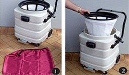 With the use of a Filter Gown, commercial disposable vacuum bags (expensive) become optional. (This option is not recommended when soiling is excessive and/or logic or health considerations dictate otherwise).